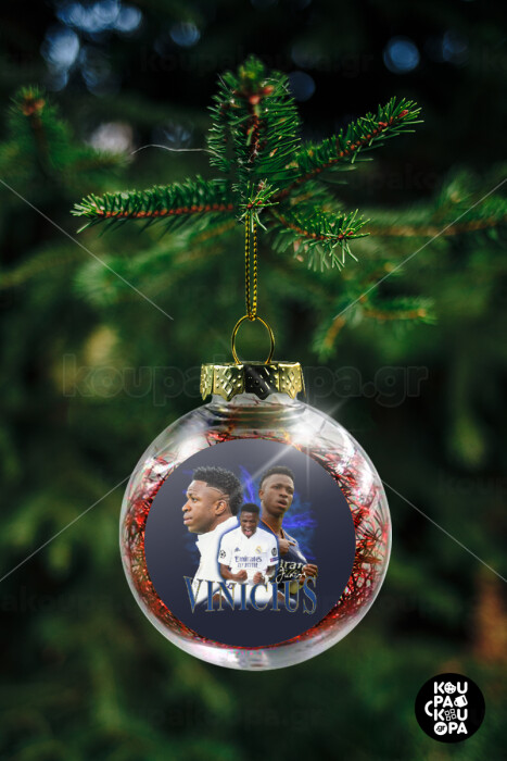 Vinicius Junior, Transparent Christmas tree ball ornament with red filling 8cm