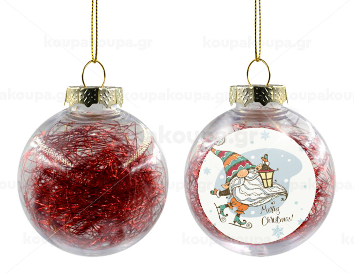 Christmas nordic gnomes, Transparent Christmas tree ball ornament with red filling 8cm