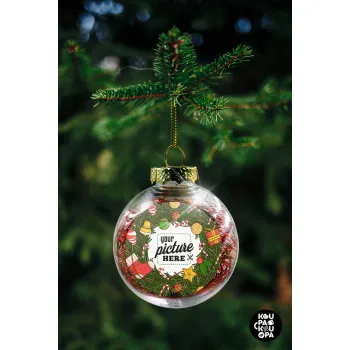 PHOTO Christmas twitch, Transparent Christmas tree ball ornament with red filling 8cm