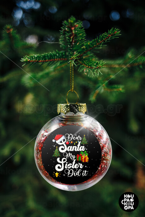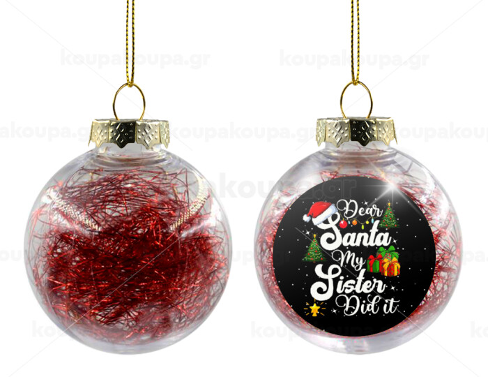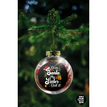 Dear santa my Sister Did it, Transparent Christmas tree ball ornament with red filling 8cm