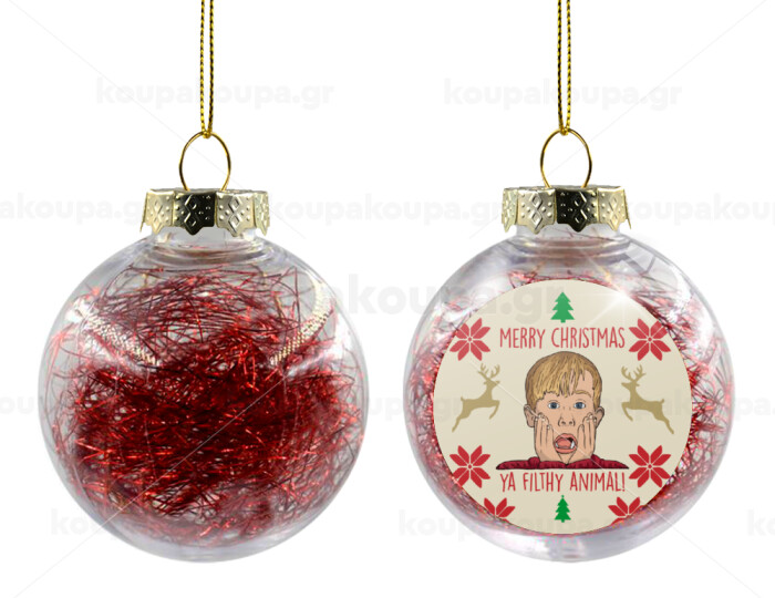 home alone, Merry Christmas ya filthy animal, Transparent Christmas tree ball ornament with red filling 8cm