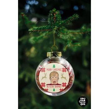 home alone, Merry Christmas ya filthy animal, Transparent Christmas tree ball ornament with red filling 8cm