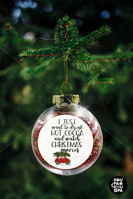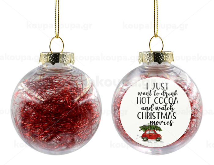 I just want to drink hot cocoa and watch christmas movies mini cooper, Transparent Christmas tree ball ornament with red filling 8cm