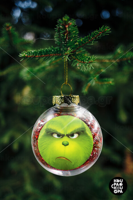 mr grinch, Transparent Christmas tree ball ornament with red filling 8cm