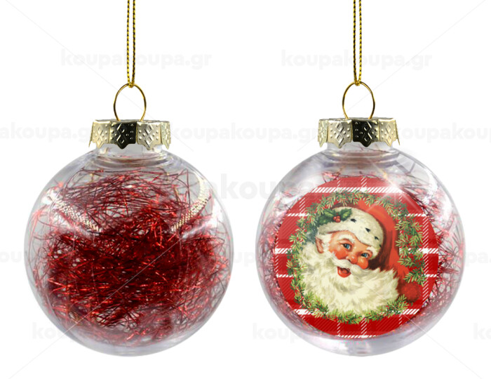 Santa Claus, Transparent Christmas tree ball ornament with red filling 8cm