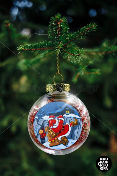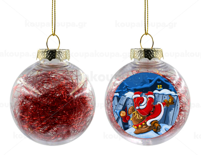 Santa Night, Transparent Christmas tree ball ornament with red filling 8cm