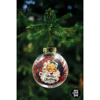 Santa vintage, Transparent Christmas tree ball ornament with red filling 8cm