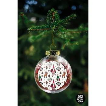 Santas, Deers & Trees, Transparent Christmas tree ball ornament with red filling 8cm