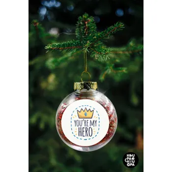 Dad, you are my hero!, Transparent Christmas tree ball ornament with red filling 8cm