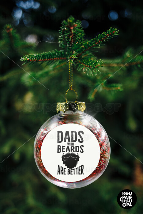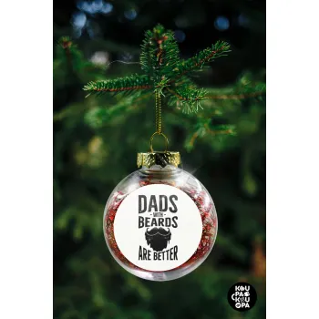 Dad's with beards are better, Transparent Christmas tree ball ornament with red filling 8cm