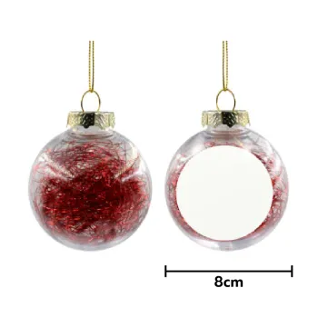 Χριστουγεννιάτικο διακοσμητικό στολίδι διάφανο με μεταλιζέ angel hair εσωτερικά σε μέγεθος 8cm, ελαφρύ σε μέγεθος για να μην κρεμάει το κλαδάκι, με κορδόνι στήριξης για τα κλαδάκια.