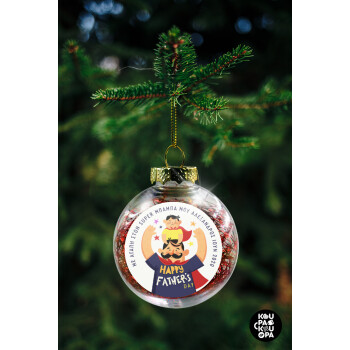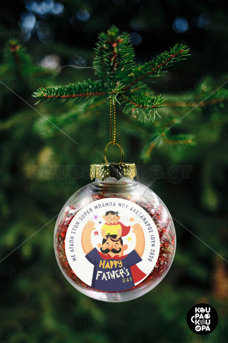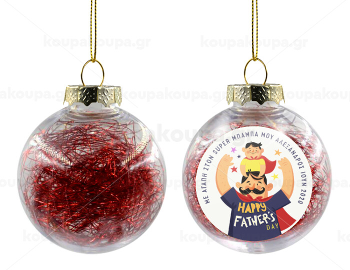 Happy Fathers Day με όνομα, Transparent Christmas tree ball ornament with red filling 8cm