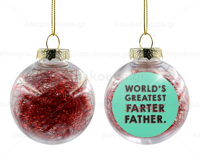 World's greatest farter, Transparent Christmas tree ball ornament with red filling 8cm