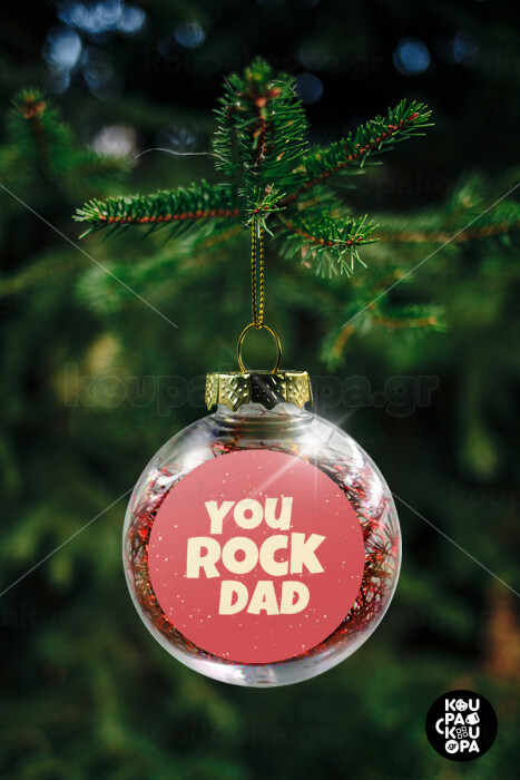 YOU ROCK DAD, Transparent Christmas tree ball ornament with red filling 8cm