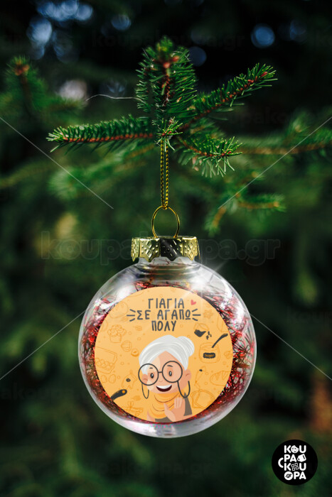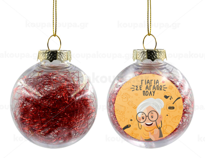 Γιαγιά σε αγαπώ πολύ!, Transparent Christmas tree ball ornament with red filling 8cm