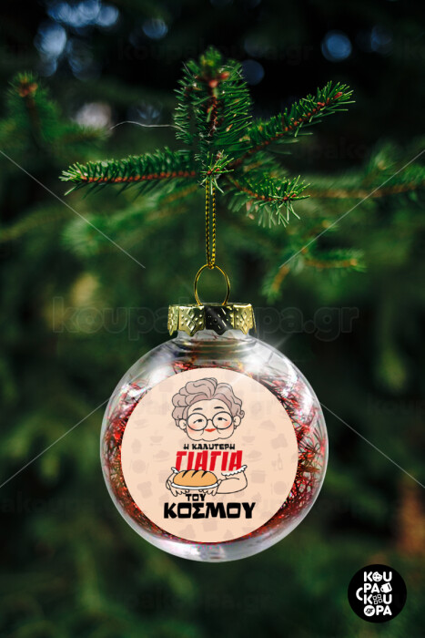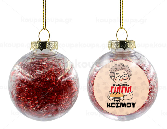 Η καλύτερη γιαγιά του κόσμου!, Transparent Christmas tree ball ornament with red filling 8cm