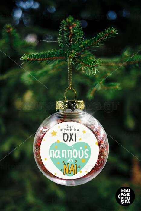 Όταν οι γονείς λένε ΟΧΙ, ο παππούς λέει ΝΑΙ, Transparent Christmas tree ball ornament with red filling 8cm