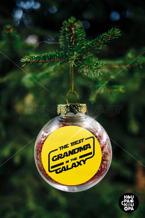 The Best GRANDMA in the Galaxy, Transparent Christmas tree ball ornament with red filling 8cm