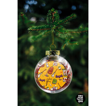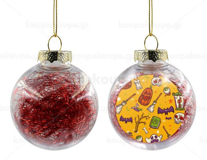 Happy Halloween, Transparent Christmas tree ball ornament with red filling 8cm
