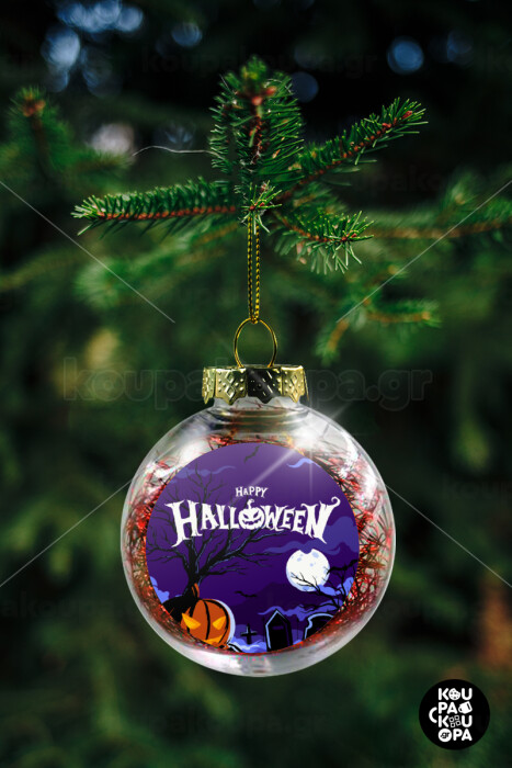 Happy Halloween cemetery, Transparent Christmas tree ball ornament with red filling 8cm