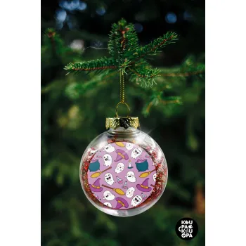 Happy Halloween pink, Transparent Christmas tree ball ornament with red filling 8cm