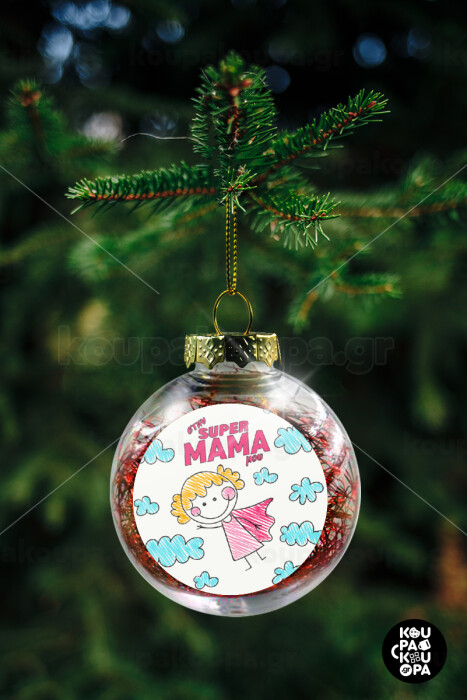 Στην SUPER μαμά μου, comic, Transparent Christmas tree ball ornament with red filling 8cm