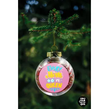 Every mom is a Queen, Transparent Christmas tree ball ornament with red filling 8cm