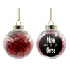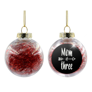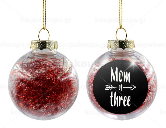 Mom of three, Transparent Christmas tree ball ornament with red filling 8cm