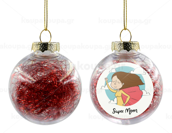 Super mom, Transparent Christmas tree ball ornament with red filling 8cm