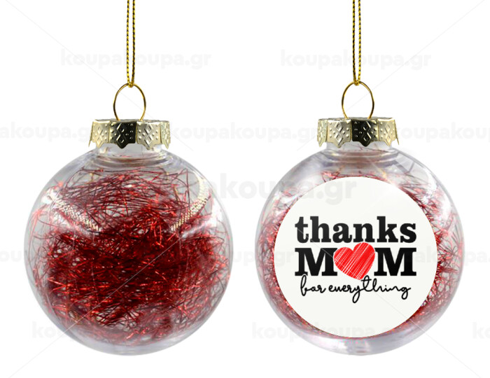 Thanks mom for everything, Transparent Christmas tree ball ornament with red filling 8cm