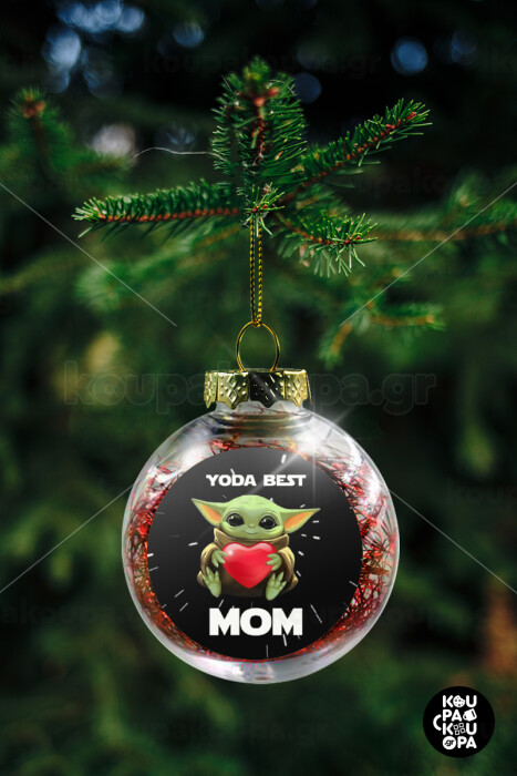 Yoda Best mom, Transparent Christmas tree ball ornament with red filling 8cm