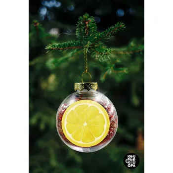 Lemon, Transparent Christmas tree ball ornament with red filling 8cm
