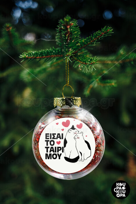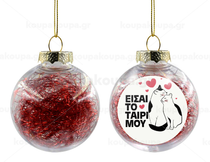 Είσαι το ταίρι μου, Transparent Christmas tree ball ornament with red filling 8cm