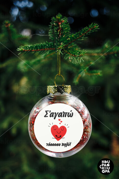 Σ΄αγαπώ τόοοοσο πολύ καρδιά, Transparent Christmas tree ball ornament with red filling 8cm