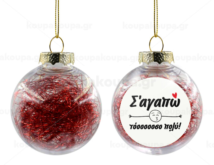 Σ΄ αγαπώ τόοοοοοσο πολύ!!!, Transparent Christmas tree ball ornament with red filling 8cm