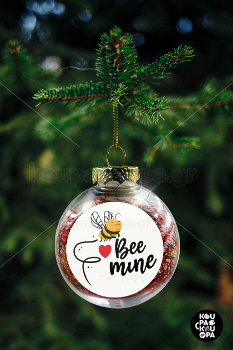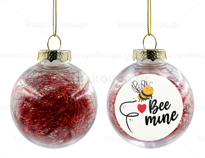 Bee mine!!!, Transparent Christmas tree ball ornament with red filling 8cm