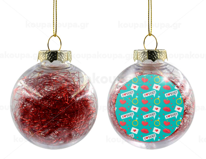 I Love You hearts rings & kiss pattern, Transparent Christmas tree ball ornament with red filling 8cm