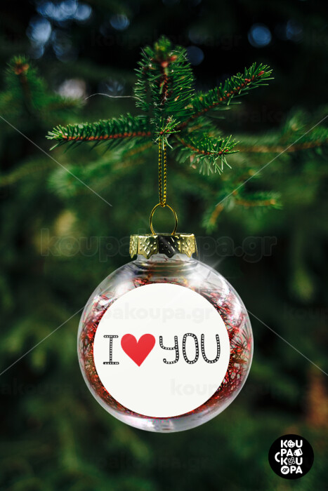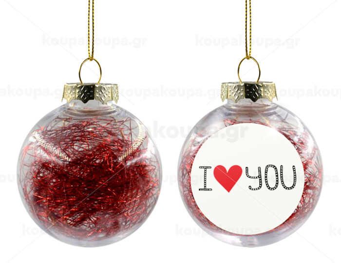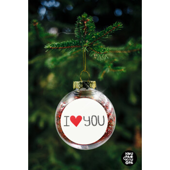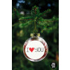 I Love You small dots, Transparent Christmas tree ball ornament with red filling 8cm