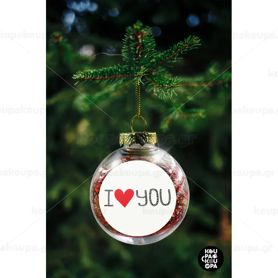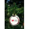 I Love You small dots, Transparent Christmas tree ball ornament with red filling 8cm