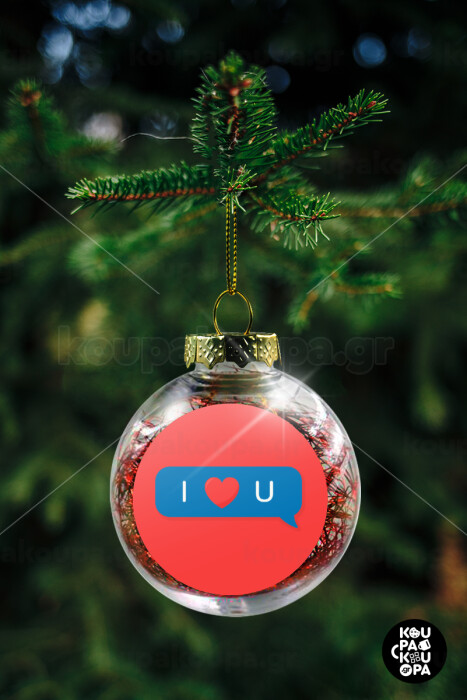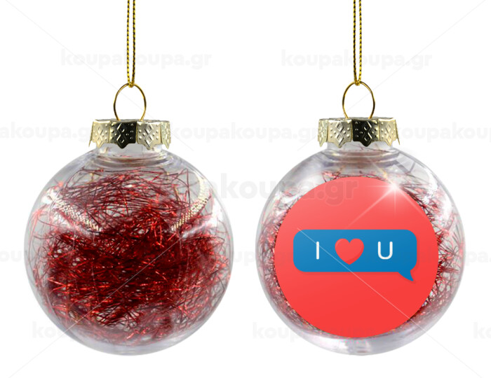I Love You text message, Transparent Christmas tree ball ornament with red filling 8cm
