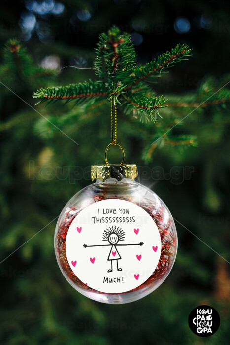 I Love you thissss much..., Transparent Christmas tree ball ornament with red filling 8cm