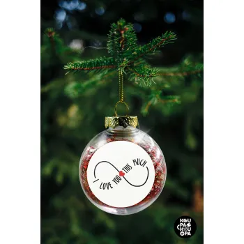 I Love you thisssss much (infinity), Transparent Christmas tree ball ornament with red filling 8cm