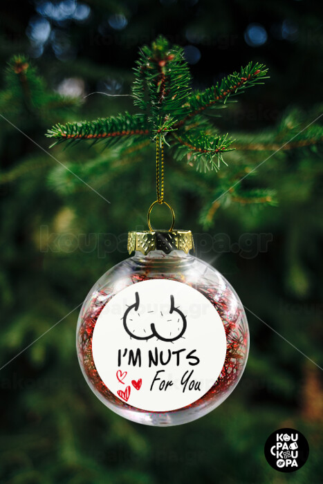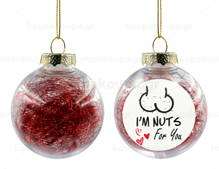 I'm Nuts for you, Transparent Christmas tree ball ornament with red filling 8cm