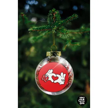 Love hands, Transparent Christmas tree ball ornament with red filling 8cm