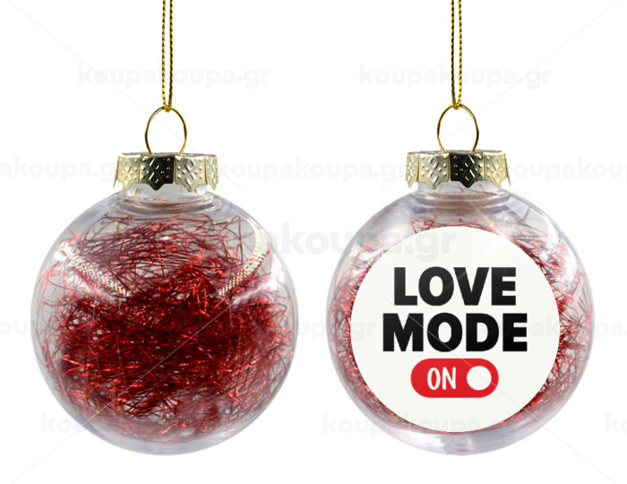 LOVE MODE ON, Transparent Christmas tree ball ornament with red filling 8cm