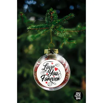 Love you forever, Transparent Christmas tree ball ornament with red filling 8cm