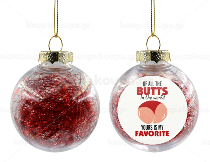 Of all the Butts in the world, your's is my favorite, Transparent Christmas tree ball ornament with red filling 8cm