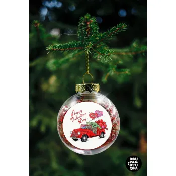 Yoda, happy valentines day (xoxo), Transparent Christmas tree ball ornament with red filling 8cm