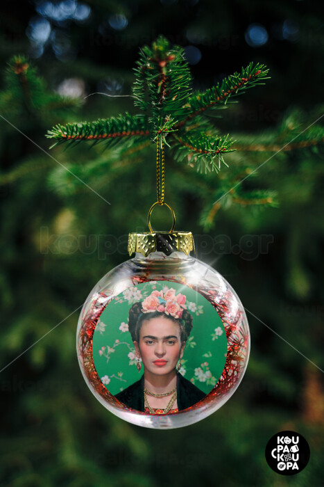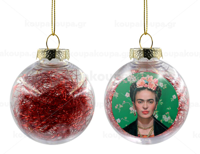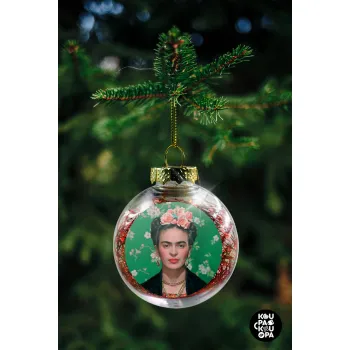 Frida Kahlo, Transparent Christmas tree ball ornament with red filling 8cm