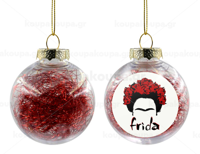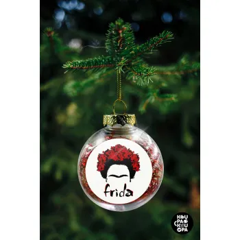 Frida, Transparent Christmas tree ball ornament with red filling 8cm